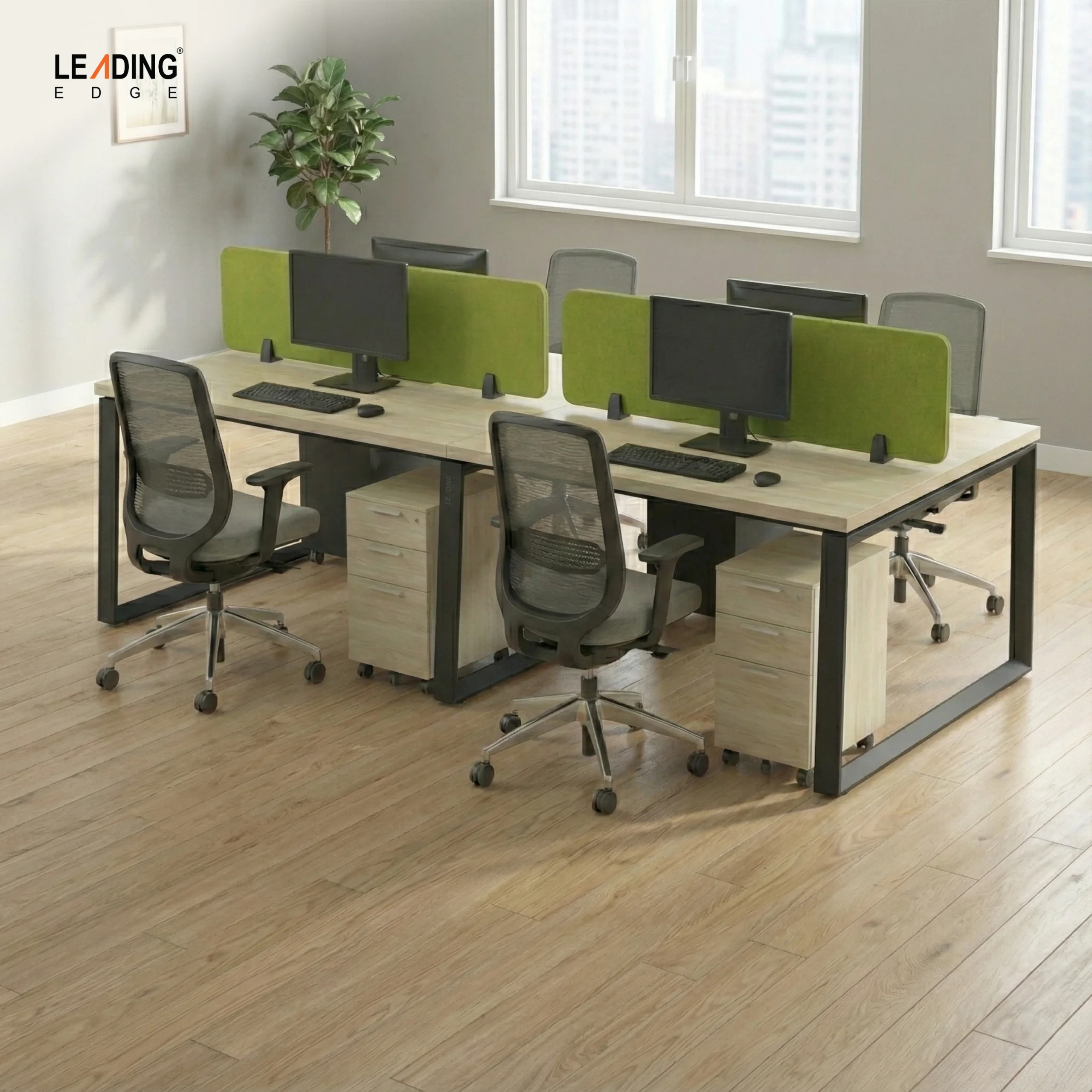 Privacy Screen: 900mm × 300mm partition available in fabric, board, or glass – designed to add focus and privacy.