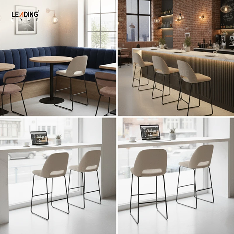 Experience refined comfort with this premium bar stool, crafted with a sleek metal base and upholstered in luxurious fabric. The plush cushioned seat offers superior support, while its sophisticated design makes it an ideal choice for upscale kitchens, elegant home bars, and stylish lounge spaces.
