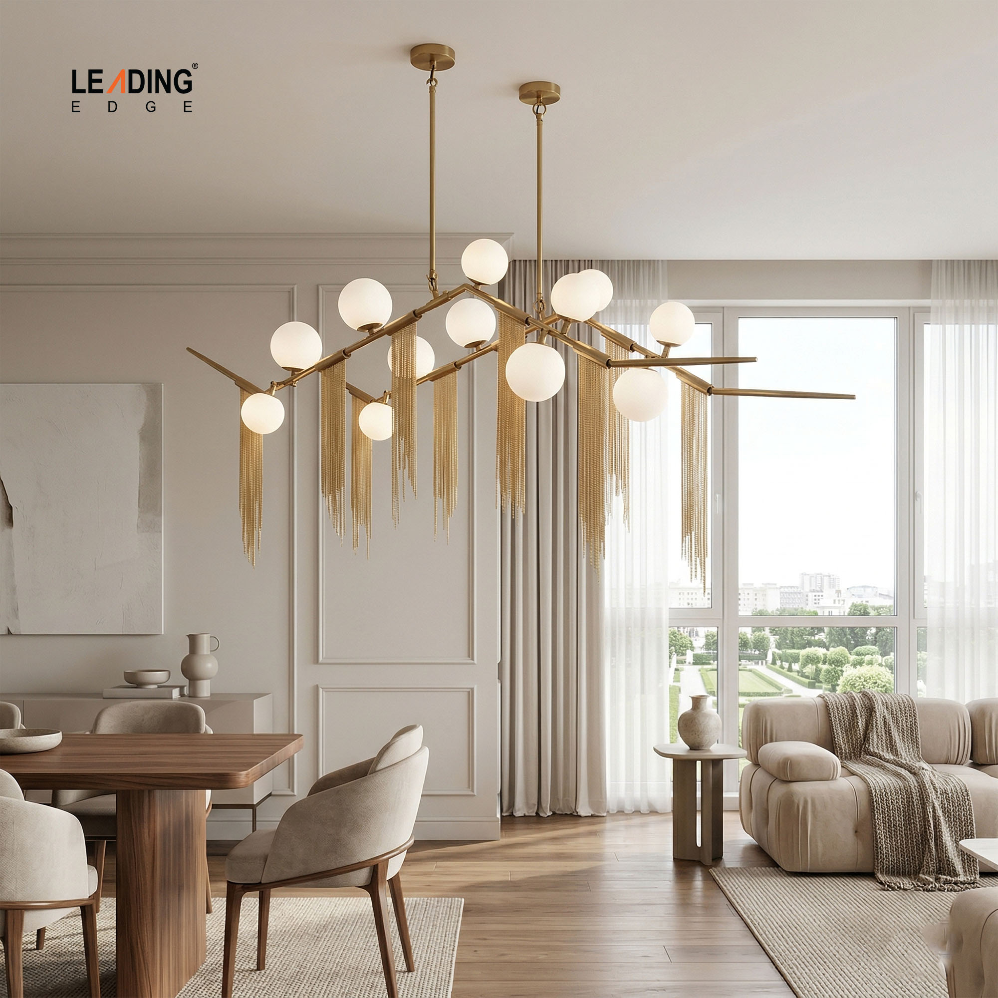 Artistic Illumination for Contemporary Living The Leading Edge cascading chandelier is more than just a light fixture; it is a centerpiece that blends industrial strength with fluid, artistic design. The asymmetric iron frame mimics natural branches, while the delicate metal fringe adds a sense of movement and “shimmer” to your space, creating a beautiful play of light and shadow.