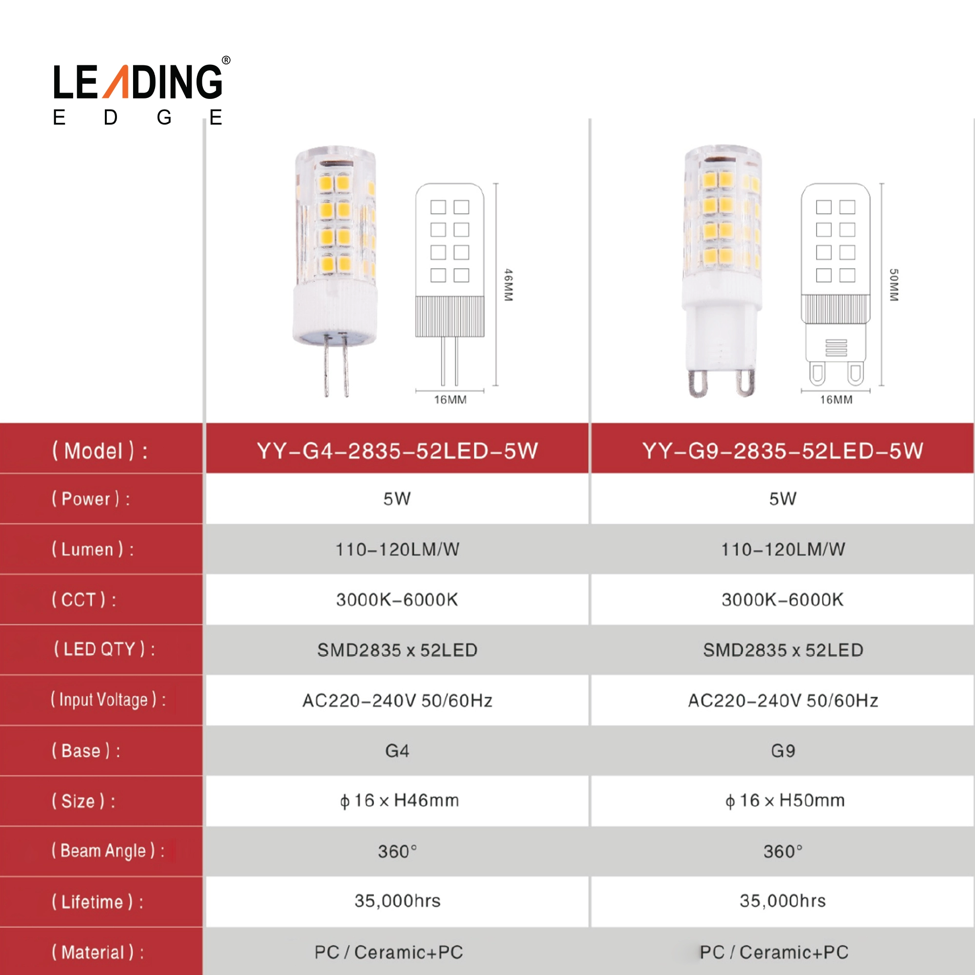 Efficient & Compact Lighting Solution Brighten your space with the Leading Edge G4 LED Bulb (Model 01-5037). Engineered for high efficiency and longevity, this 5W LED bulb serves as a superior alternative to traditional halogen bulbs. With a warm 3000K color temperature, it provides a soft, inviting glow ideal for both residential and commercial settings.