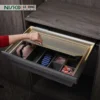 A standout feature of the H606-Pro is its integrated flip-down lid. Crafted with a premium leather-like finish, this soft-touch cover discreetly conceals contents when the drawer is open, providing both privacy and a clean, visual aesthetic in shared dressing spaces.
