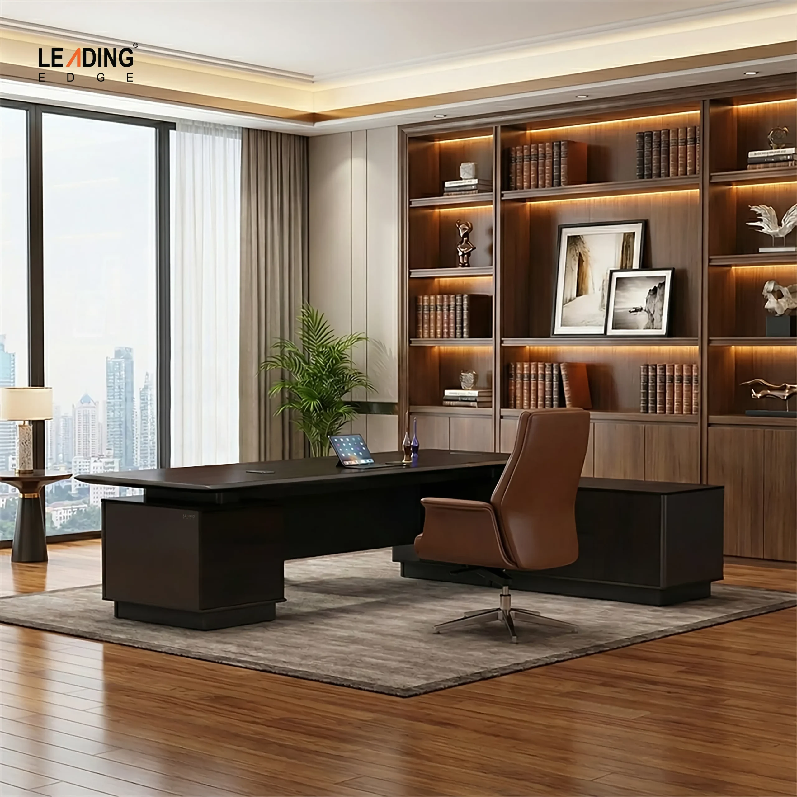 Command the room with The Icon (Model 01-4792), a workstation that perfectly balances understated authority with cutting-edge design. Crafted for the high-profile executive—whether a CEO, Chairman, or industry visionary—this fully imported suite features a sophisticated Deep Grey theme that brings a sense of calm, focused power to any office environment.