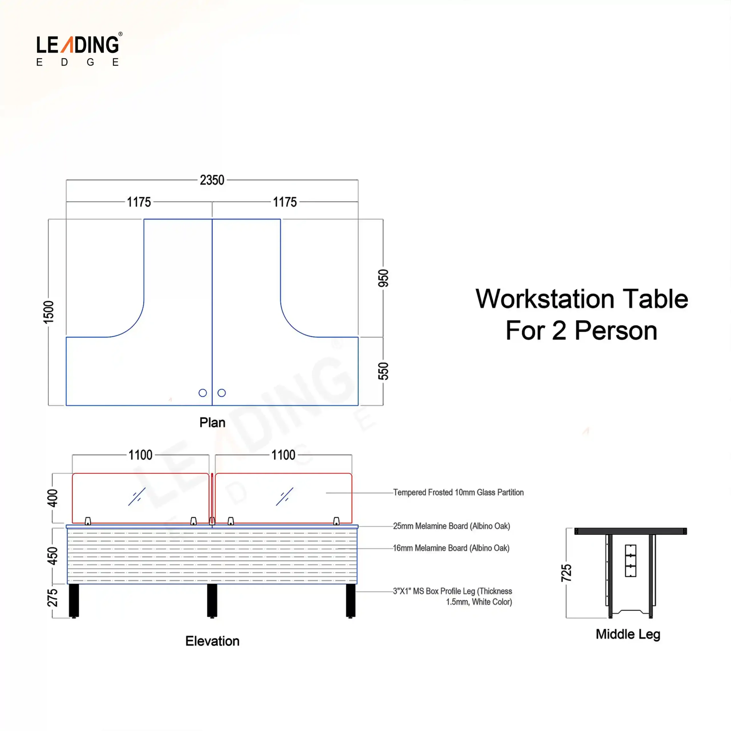 Overall Workstation Size: 2350mm × 1500mm / 94inch × 60inch